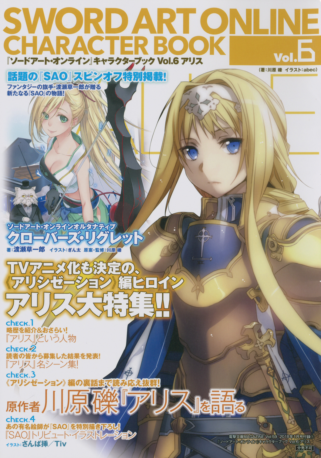 The final character book features Alice (I’m still sore that Eugeo got left out… :/). This character book came with Dengeki Bunko MAGAZINE Vol.59, which was released on 9 December, 2017. That means the interview came out just as Kawahara released the prologue for V21 on that very same magazine, and a year before the Alicization anime started airing. Which means that quite a lot of stuff mentioned here can be quite outdated (mostly the stuff about Unital Ring, since Kawahara hadn’t yet thought over where he was going to take the story, as he had only started working on it), or talked about anime stuff at a time when the (Japanese) dubbing process hadn’t yet begun, so Kawahara and the interviewer didn’t have much to work with in their talks. So basically, take things said about post-Alicization plotlines with a grain of salt. Anyway, I hope you’ll enjoy the read.